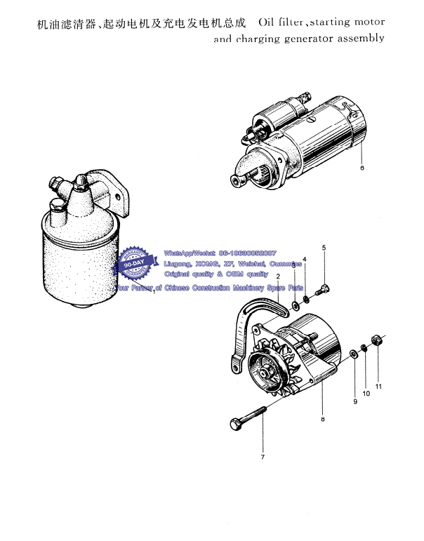 机油滤清器、起动电机及充电发电机总成 Oil filter 、starting motor and charging generator assembly