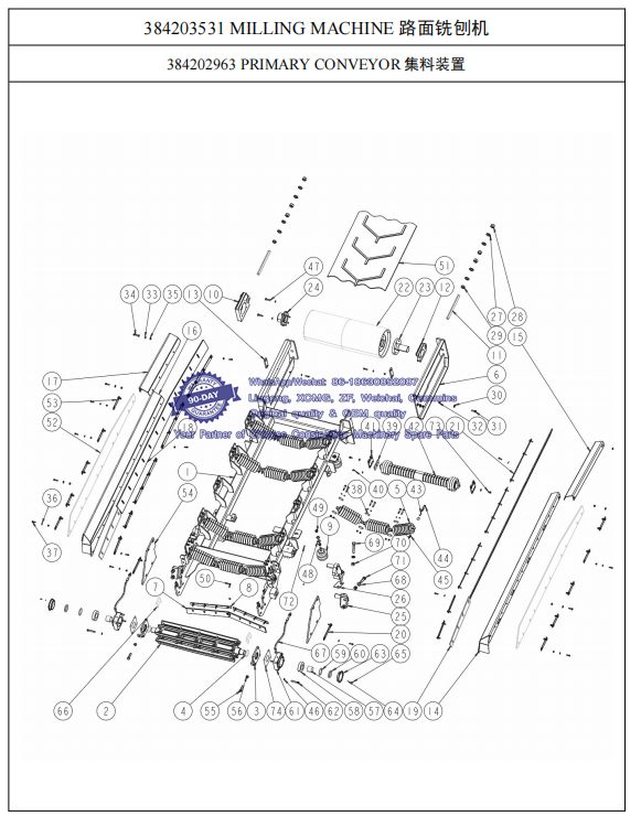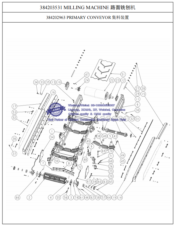 011 384201532 DISCHARGE CONVEYOR 送料总成-- XCMG Road Milling Machine XM200 Spare Parts Catalog