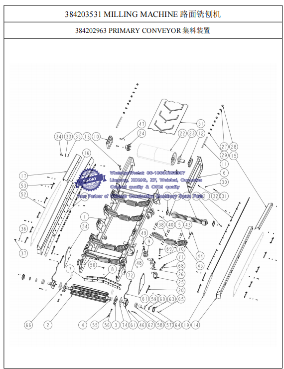 010 384201532 DISCHARGE CONVEYOR 送料总成-- XCMG Road Milling Machine XM200 Spare Parts Catalog