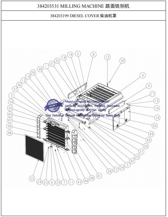 076 384203199 DIESEL COVER 柴油机罩-- XCMG Road Milling Machine XM200 Spare Parts Catalog