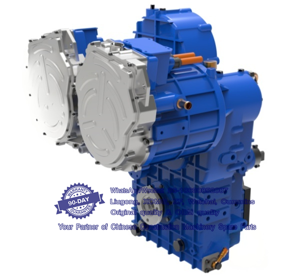 The EH100/EH120 drive assembly integrates the walking powertrain and hydraulic powertrain into a single unit, achieving optimization between vehicle components through the rational layout of the motor, electronic control, and gearbox. The drive assembly adopts a horizontal layout design with dual motors for power and hydraulics. The powertrain delivers the vehicle's walking power output via front and rear output flanges, while the hydraulic assembly meets the hydraulic power take-off requirements through output splines.